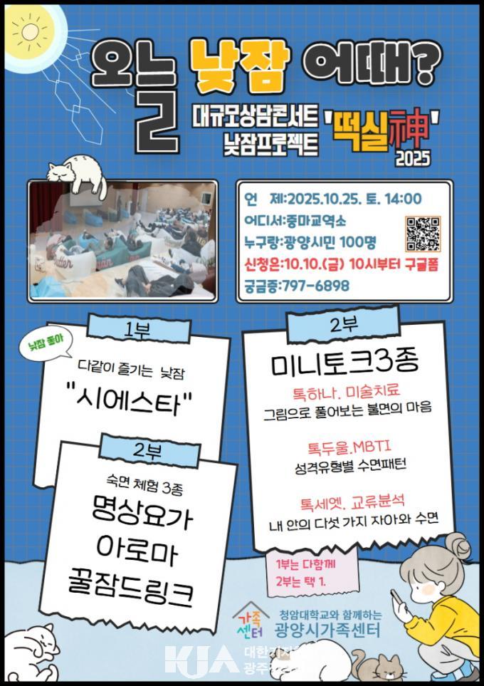 ±¤¾ç½Ã°¡Á·¼¾ÅÍ, ´ë±Ô¸ð »ó´ãÄܼƮ ¡®³·Àá ÇÁ·ÎÁ§Æ® ¶±½Çãꡯ ¿î¿µ ³·Àá ÇÁ·ÎÁ§Æ® ¡®¶±½ÇãꡯÀ¸·Î ½Ã¹Î ¸¶À½°Ç° ȸº¹ µ½´Â´Ù |