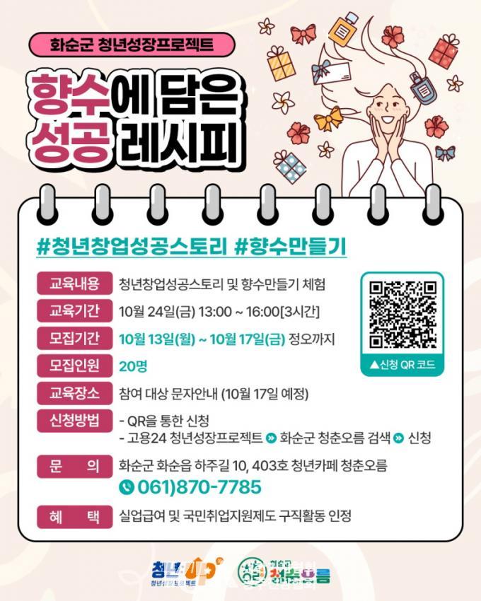 ÇÁ·Î±×·¥Àº °¢°¢ 2025³â 10¿ù 23ÀÏ(¸ñ), 24ÀÏ(±Ý) ¿ÀÈÄ 13½ÃºÎÅÍ 3½Ã°£ µ¿¾È ÁøÇàµÇ¸ç, Àå¼Ò´Â Âü¿©ÀÚ¿¡°Ô °³º° ¹®ÀÚ·Î ¾È³»µÉ ¿¹Á¤ÀÌ´Ù. û³â ´©±¸³ª ½ÅûÀÌ °¡´ÉÇϸç, ¼±Âø¼ø 20¸í ¸¶°¨ÀÌ´Ù. ½Åû ¹æ¹ýÀº Æ÷½ºÅÍ QRÄÚµå ¶Ç´Â °í¿ë24 ¡æ û³â¼ºÀåÇÁ·ÎÁ§Æ® ¡æ ȼø±º ûÃá¿À¸§À» °Ë»öÇÏ¿© ½ÅûÇÒ ¼ö ÀÖ´Ù.