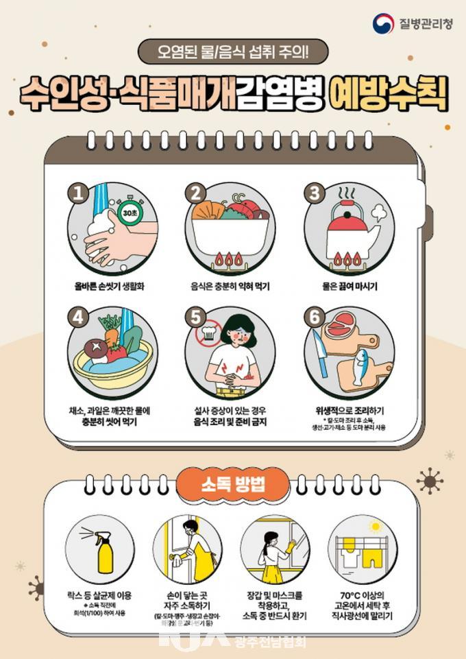 ¿À¿°µÈ ¹°¡¤À½½Ä ¼·Ãë ÁÖÀǸ¦ Á¦¸ñÀ¸·Î ÇÑ ¿¹¹æ¼öÄ¢Àº ¡â¿Ã¹Ù¸¥ ¼Õ ¾Ä±â »ýȰȭ ¡âÀ½½ÄÀº ÃæºÐÈ÷ ÀÍÇô ¸Ô±â ¡â¹°Àº ²ú¿© ¸¶½Ã±â ¡âä¼Ò¡¤°úÀÏÀº ±ú²ýÇÑ ¹°¿¡ ÃæºÐÈ÷ ¾Ä¾î ¸Ô±â ¡â¼³»ç Áõ»óÀÌ ÀÖ´Â °æ¿ì À½½Ä Á¶¸® ¹× Áغñ ±ÝÁö ¡âÀ§»ýÀûÀ¸·Î Á¶¸®Çϱâ·Î ±¸¼ºµÅ ÀÖ´Ù.