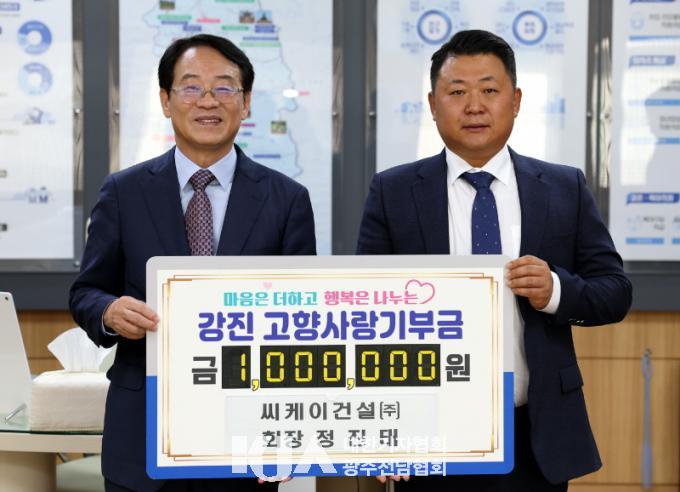 Á¤ÁøÅ ¾¾ÄÉÀ̰Ǽ³(ÁÖ) ȸÀåÀº Æò¼Ò °Áø¿¡ ´ëÇÑ ¾ÖÁ¤À¸·Î °íÇâ»ç¶û±âºÎ±Ý 100¸¸¿øÀ» ÄèôÇÏ¿© °¨µ¿À» ÀھƳ´Ù. ±âŹ½Ä¿¡´Â ÀÌµæ·æ ¾¾ÄÉÀ̰Ǽ³(ÁÖ) ´ëÇ¥°¡ ´ë¸® Âü¼®Çß´Ù.