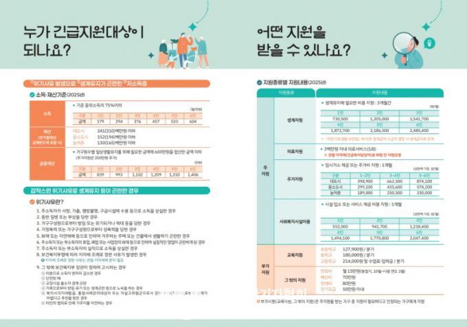 ±ä±Þº¹Áö Áö¿øÀº ÁÖ ¼ÒµæÀÚÀÇ ½ÇÁ÷, »ç¸Á, ÁßÇÑ Áúº´․ºÎ»ó, ÈÀç, ÈÞ․Æó¾÷ µî À§±â »óȲ ¹ß»ýÀ¸·Î »ý°èÀ¯Áö°¡ °ï¶õÇÑ Àú¼Òµæ °¡±¸¿¡ »ý°èºñ, ÀÇ·áºñ, Áְźñ, º¹Áö½Ã¼³ ÀÌ¿ë, ±³À°ºñ, ÇØ»êºñ µîÀ» Áö¿øÇÏ´Â Á¦µµ·Î °ÅÁÖÁö °üÇÒ À¾․¸é»ç¹«¼Ò³ª ÀÔ¿ø Ä¡·á ÁßÀÎ ÀÇ·á±â°üÀ» ÅëÇØ ½ÅûÇÒ ¼ö ÀÖ´Ù.
