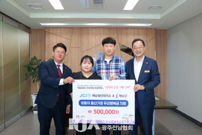 | ÇØ³²±º, ½ÖµÕÀÌ Ãâ»ê°¡Á¤¿¡ µÎ ¹èÀÇ ±â»Ý ÀüÇØ¿ä ÇØ³²±º¡¤Çس²Ã»³âȸÀǼҡ®µÎ¸®Çູ±Ý¡¯ Àü´Þ |