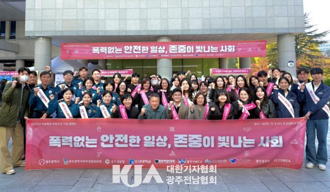 [´ëÇѱâÀÚÇùȸ ±¤ÁÖÀü³²Çùȸ] ±¤ÁÖ±¤¿ª½Ã(½ÃÀå °±âÁ¤)´Â ¡®¿©¼ºÆø·Â Ãß¹æÁÖ°£¡¯(11¿ù25ÀÏ~12¿ù1ÀÏ)À» ¸Â¾Æ 5ÀÏ Á¶¼±´ëÇб³ Áß¾Óµµ¼°ü ±¤Àå¿¡¼ ¡®Æø·Â ¾ø´Â ¾ÈÀüÇÑ ÀÏ»ó, Á¸ÁßÀÌ ºû³ª´Â »çȸ¡¯¸¦ ÁÖÁ¦·Î ÇÕµ¿ Ä·ÆäÀÎÀ» ½Ç½ÃÇß´Ù.
