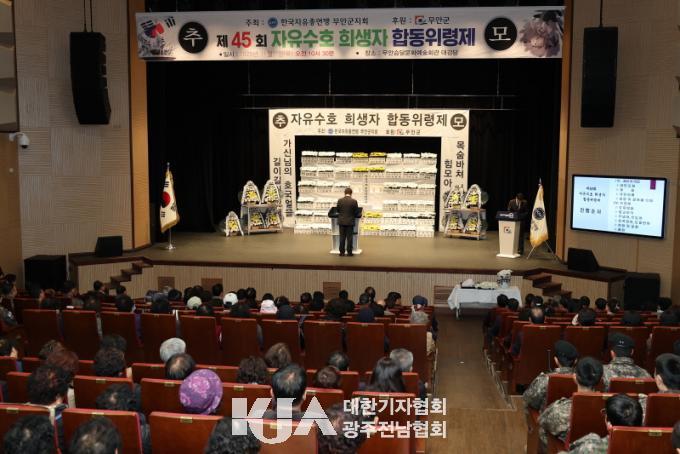 [´ëÇѱâÀÚÇùȸ ¹«¾È±ºÁöȸ ¹ÚÁ¶Çå ±âÀÚ] ¹«¾È±º(±º¼ö ±è»ê)Àº Áö³ 11ÀÏ ¿ÀÀü ½Â´Þ¹®È¿¹¼úȸ°ü¿¡¼ Çѱ¹ÀÚÀ¯ÃÑ¿¬¸Í ¹«¾È±ºÁöȸ(ÁöȸÀå ¹Ú¿µÀÏ) ÁÖ°üÀ¸·Î ¡°Á¦45ȸ ÀÚÀ¯¼öÈ£ Èñ»ýÀÚ ÇÕµ¿À§·ÉÁ¦¡±¸¦ ¾ö¼÷È÷ °ÅÇàÇß´Ù.