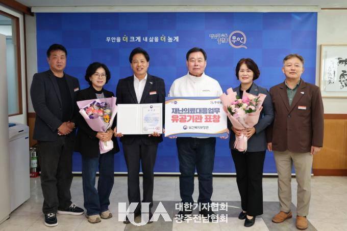 [´ëÇѱâÀÚÇùȸ ¹«¾È±ºÁöȸ ¹ÚÁ¶Çå ±âÀÚ] ¹«¾È±º(±º¼ö ±è»ê)Àº Áö³ 14ÀÏ Àç³ÀÀ±ÞÀÇ·á ´ëÀÀ ºÐ¾ß¿¡¼ Ź¿ùÇÑ °ø·Î¸¦ ÀÎÁ¤¹Þ¾Æ º¸°Çº¹ÁöºÎ·ÎºÎÅÍ Àç³ÀÀ±ÞÀÇ·á ´ëÀÀ¾÷¹« À¯°ø Àå°ü ǥâÀ» ¹Þ¾Ò´Ù.