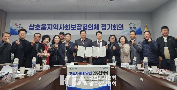[´ëÇѱâÀÚÇùȸ ¿µ¾Ï±ºÁöȸ] ¿µ¾Ï±º »ïÈ£À¾Áö¿ª»çȸº¸ÀåÇùÀÇü(°øµ¿À§¿øÀå ±è»ó°ï, ¼º¸íÁ¦)°¡. 19ÀÏ À¾ÇàÁ¤º¹Áö¼¾ÅÍ¿¡¼ ¿¬¼¼¿ìÀ¯ ¼³²´ë¸®Á¡(´ëÇ¥ ±è°æ¼ö)°ú ¡®°íµ¶»ç ¿¹¹æ°ü¸® ¾÷¹«Çù¾à¡¯À» ü°áÇß´Ù.