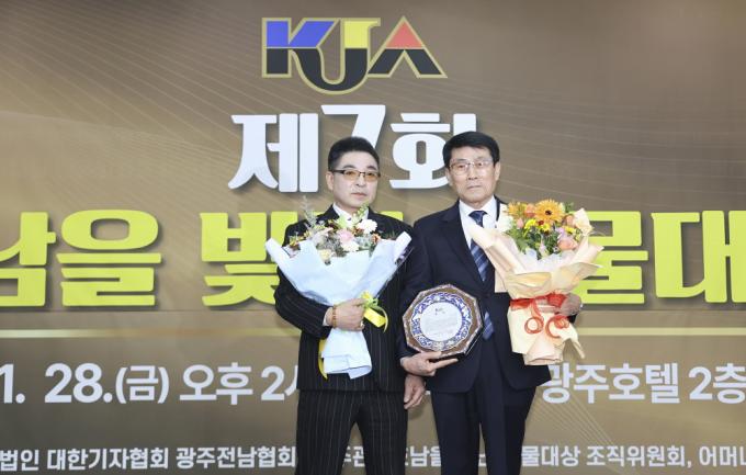[´ëÇѱâÀÚÇùȸ ±¤ÁÖÀü³²Çùȸ ÀÓÀ±Áø ±âÀÚ] ±è¿ëÈ® º¸´Â´º½º ´ëÇ¥°¡ 11¿ù 28ÀÏ(±Ý) ±¤ÁÖ ¼­±¸ Ȧ¸®µ¥ÀÌ ÀÎ ±¤ÁÖÈ£ÅÚ¿¡¼­ ¿­¸° »ç´Ü¹ýÀÎ ´ëÇѱâÀÚÇùȸ ±¤ÁÖ¡¤Àü³²Çùȸ ÁÖÃÖ ¡®2025³â Á¦7ȸ È£³²À» ºû³½ Àι°´ë»ó¡¯ ½Ã»ó½Ä¿¡¼­ ¾ð·ÐºÎ¹® ¾ð·Ð¹ßÀü°ø·Î´ë»óÀ» ¼ö»óÇß´Ù.