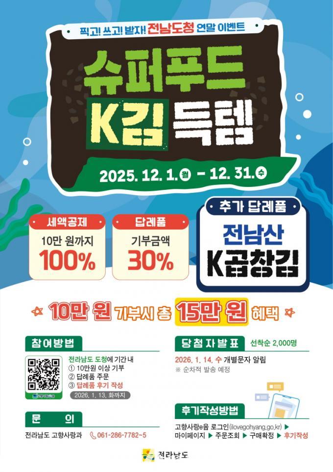 | Àü¶ó³²µµ, °íÇâ»ç¶û±âºÎÁ¦ ¿¬¸» ±è À̺¥Æ® ÁøÇà °íÇâ»ç¶û±âºÎÇÏ¸é ¡®½´ÆÛǪµå K±è¡¯ÀÌ ´ýÀ¸·Î 10¸¸¿ø ÀÌ»ó ±âºÎ 2õ¸í¿¡°Ô Àü³²»ê °öâ±è ÁõÁ¤ À̺¥Æ® |
