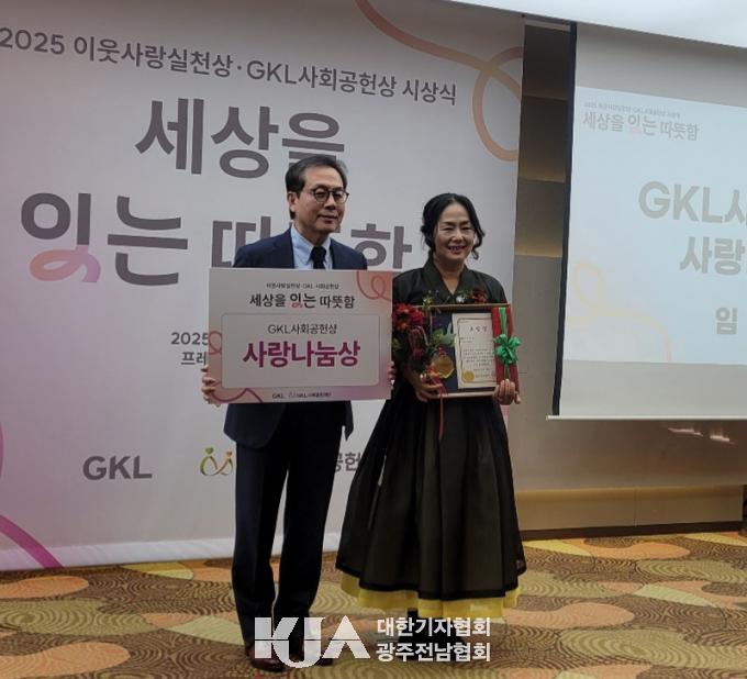 [´ëÇѱâÀÚÇùȸ ±¤ÁÖÀü³²Çùȸ Á¶³²Àç ±âÀÚ] °î¼º±º ¶Ò¹æ¸¶ÄÏ ÀÓ¿øÀÚ ´ëÇ¥°¡ Áö³ 12ÀÏ ±×·£µåÄÚ¸®¾Æ·¹Àú(GKL)¿Í GKL »çȸ°øÇåÀç´Ü¿¡¼ °³ÃÖÇÑ ¡®2025³â ÀÌ¿ô»ç¶û½Çõ»ó¡¤GKL »çȸ°øÇå»ó¡¯ ½Ã»ó½Ä¿¡¼ ¡®»ç¶û³ª´®»ó¡¯À» ¼ö»óÇß´Ù.