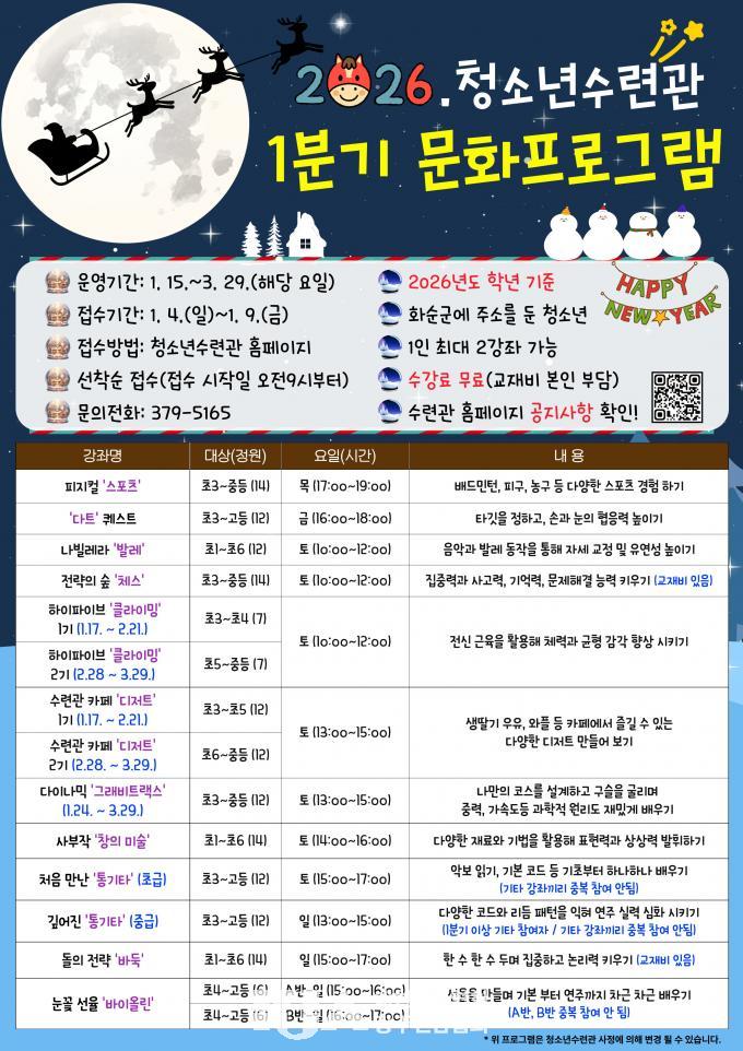 | | ȼø±ºÃ»¼Ò³â¼ö·Ã°ü, ¡®2026³â 1ºÐ±â ¹®È ÇÁ·Î±×·¥¡¯ ¿î¿µ |