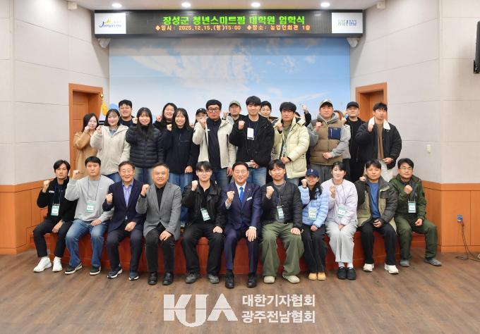[´ëÇѱâÀÚÇùȸ À强±ºÁöȸ] À强±ºÀÌ 15ÀÏ ³ó¾÷ÀÎȸ°ü¿¡¼ û³â ³ó¾÷ÀÎ 27¸íÀÌ Âü¼®ÇÑ °¡¿îµ¥ ¡®Ã»³â ½º¸¶Æ®ÆÊ ´ëÇпø¡¯ ÀÔÇнÄÀ» °¡Á³´Ù.