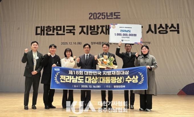 [´ëÇѱâÀÚÇùȸ ±¤ÁÖÀü³²Çùȸ] Àü¶ó³²µµ´Â 16ÀÏ Á¤ºÎ¼¼Á¾Ã»»ç¿¡¼ ¿¸° ÇàÁ¤¾ÈÀüºÎÀÇ 2025³â Á¦18ȸ ´ëÇѹα¹ Áö¹æÀçÁ¤´ë»ó ½Ã»ó½Ä¿¡¼ ¡®ÅëÇÕÀçÁ¤¿î¿µÆò°¡¡¯ ºÐ¾ß ´ë»ó(´ëÅë·É»ó)À» ¹Þ¾Æ, ÀçÁ¤Àμ¾Æ¼ºê 10¾ï ¿øÀ» È®º¸Çß´Ù°í ¹àÇû´Ù.