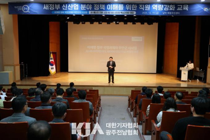 [´ëÇѱâÀÚÇùȸ ¹«¾È±ºÁöȸ ¹ÚÁ¶Çå ±âÀÚ] ¹«¾È±º(±º¼ö ±è»ê)Àº Áö³ 19ÀÏ ³²¾Ç º¹ÇÕÁֹμ¾ÅÍ ´ë°´ç¿¡¼ ÀÌÀç¸í Á¤ºÎ°¡ ±¹°¡ ½Å¼ºÀå µ¿·ÂÀ¸·Î À°¼ºÇϰí ÀÖ´Â ¿¡³ÊÁö, AI µî ½Å»ê¾÷ ºÐ¾ß¿¡ ´ëÇÑ Á¤ºÎ ±¹Á¤°úÁ¦¿Í ÃÖ±Ù Á¤Ã¥ µ¿Çâ¿¡ ´ëÇÑ ÀÌÇØµµ¸¦ ³ôÀ̱â À§ÇØ ¹«¾È±º °øÁ÷ÀÚµéÀ» ´ë»óÀ¸·Î ¿ª·® °È ±³À°À» ½Ç½ÃÇß´Ù.