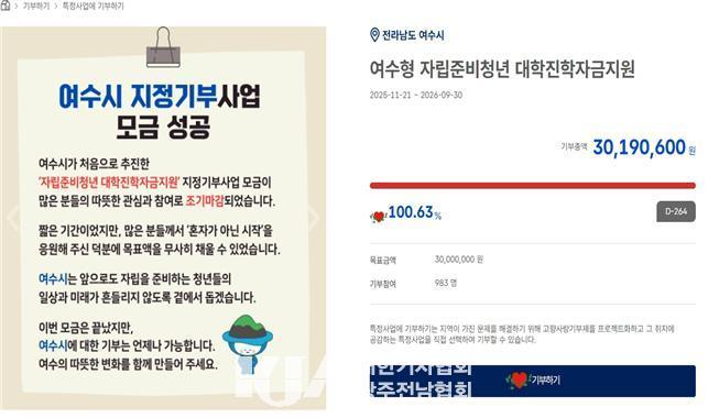 | ¿©¼ö½Ã, 2025³â °íÇâ»ç¶û±âºÎ±Ý 14.9¾ï ¿ø ´Þ¼º! µµ³» ¸ð±Ý¾× 3À§ µî±Ø ¡®°¡Ä¡ ¼Òºñ¡¯ ÅëÇß´Ù¡¦¿ÃÇØºÎÅÍ °íÇâ»ç¶û±âºÎÁ¦ ÇýÅà ´ëÆø °È |