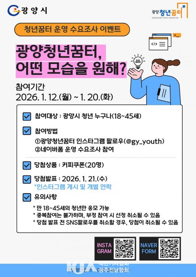 | ±¤¾çû³â²ÞÅÍ, 2026³â ¿î¿µ ¼ö¿äÁ¶»ç À̺¥Æ® ÁøÇà ¡°±¤¾çû³â²ÞÅÍ, ¾î¶² ¸ð½ÀÀ» ¿øÇØ?¡± ³×À̹öÆû Âü¿©... Ãß÷ ÅëÇØ °æÇ° ÁõÁ¤ |
