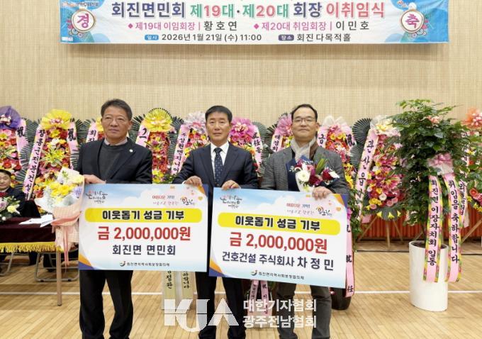 À̳¯ ±âŹ½Ä¿¡¼­´Â ȸÁø¸é ¸é¹Îȸ(ȸÀå À̹ÎÈ£)°¡ 200¸¸ ¿ø, °ÇÈ£°Ç¼³ ÁÖ½Äȸ»ç(´ëÇ¥ Â÷Á¤¹Î)°¡ 200¸¸ ¿øÀ» °¢°¢ ±âŹÇϸç, Áö¿ªÀÇ ¾î·Á¿î ÀÌ¿ô°ú º¹Áö »ç°¢Áö´ë ÇØ¼Ò¸¦ À§ÇÑ µû¶æÇÑ ³ª´®¿¡ µ¿ÂüÇß´Ù.