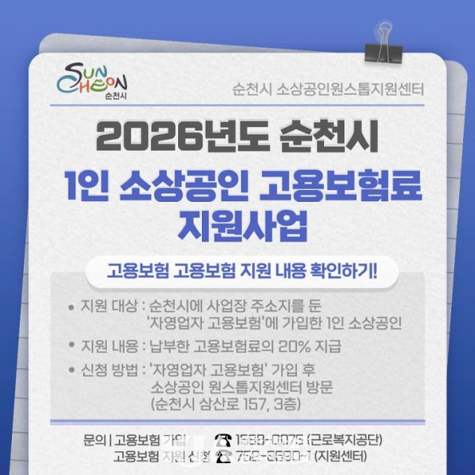 ¼øÃµ½Ã, 2026³â 1ÀÎ ¼Ò»ó°øÀÎ °í¿ëº¸Çè·á Áö¿ø»ç¾÷ ÃßÁø