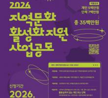 | ³ªÁÖ¹®ÈÀç´Ü, 2026 Áö¿ª¹®È Ȱ¼ºÈ Áö¿ø»ç¾÷ °ø¸ð 3¿ù 20ÀÏ 16½Ã±îÁö Á¢¼ö...°³ÀÎ ÃÖ´ë 500¸¸ ¿ø, ´Üü ÃÖ´ë 700¸¸ ¿ø Áö¿ø |