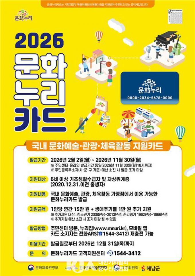 | ÇØ³²±º, 2026³â ¹®È´©¸®Ä«µå »ç¾÷ ÃßÁø ¡°1Àδç ÃÖ´ë 16¸¸¿ø Áö¿ø¡± ¹®È¼Ò¿Ü°èÃþ ¹®Èº¹Áö¿¡ ´Ù¾çÇÏ°Ô »ç¿ë, °ü³» 84°³ °¡¸ÍÁ¡ °¡´É |