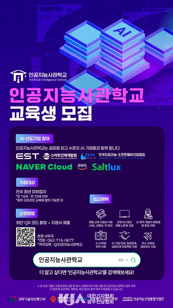 ±¤ÁÖ±¤¿ª½Ã(½ÃÀå °±âÁ¤)¿Í ±¤ÁÖÀΰøÁö´É»ç°üÇб³´Â Á¦7±â AI»ç°üÇб³ ±³À°»ý 220¸íÀ» ¿À´Â 3¿ù31ÀϱîÁö ¸ðÁýÇÑ´Ù. À̹ø¿¡ ¸ðÁýÇÏ´Â 7±â´Â ±³À° ü°è¿Í ÅõÀÚ ±¸Á¶¸¦ Àü¸é °³ÆíÇÑ ¡®AI ÃÖ°í±Þ °úÁ¤¡¯À¸·Î ¿î¿µµÈ´Ù.