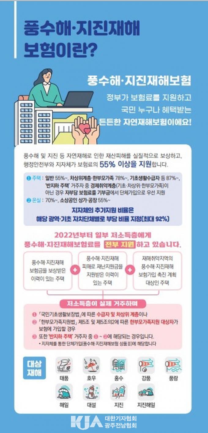 dz¼öÇØ¡¤ÁöÁøÀçÇØº¸ÇèÀº 2008³âºÎÅÍ ½ÃÇàÇÑ ±¹°¡Á¤Ã¥ º¸ÇèÀÌ´Ù. ÅÂdz, È«¼ö, È£¿ì, °Ç³, dz¶û, ÇØÀÏ, ´ë¼³, ÁöÁø, 8°³ ÀçÇØ¸¦ º¸ÀåÇÑ´Ù. ÁÖÅá¤¿Â½Ç ¼ÒÀ¯ÀÚ¿Í ¼¼ÀÔÀÚ, »ó°¡³ª °øÀåÀ» ¼ÒÀ¯ÇÑ ¼Ò»ó°øÀÎÀ̶ó¸é ´©±¸³ª °¡ÀÔÇÒ ¼ö ÀÖ´Ù.