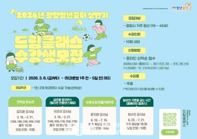 | ±¤¾çû³â²ÞÅÍ, ¡®2026³â »ó¹Ý±â µå¸²Å¬·¡½º¡¯ ¼ö°»ý ¼±Âø¼ø ¸ðÁý û³â ¼ö¿ä ¹Ý¿µÇÑ ¸ÂÃãÇü 4°³ °Á ¿î¿µ¡¦Àü¾× ¹«·á |