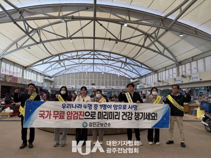 [´ëÇѱâÀÚÇùȸ °­Áø±ºÁöȸ ±è¿µÀÏ ±âÀÚ] °­Áø±ºº¸°Ç¼Ò°¡ ¾Ï ¿¹¹æ ¼öÄ¢°ú Á¶±â °ËÁøÀÇ Çʿ伺À» ¾Ë¸®±â À§ÇØ Áö³­ 19ÀÏ °­ÁøÀ¾ ½ÃÀå ÀÏ¿ø¿¡¼­ ¡®321 ¾Ï ¿¹¹æÀÇ ³¯¡¯ È«º¸ Ä·ÆäÀÎÀ» ÁøÇàÇß´Ù.