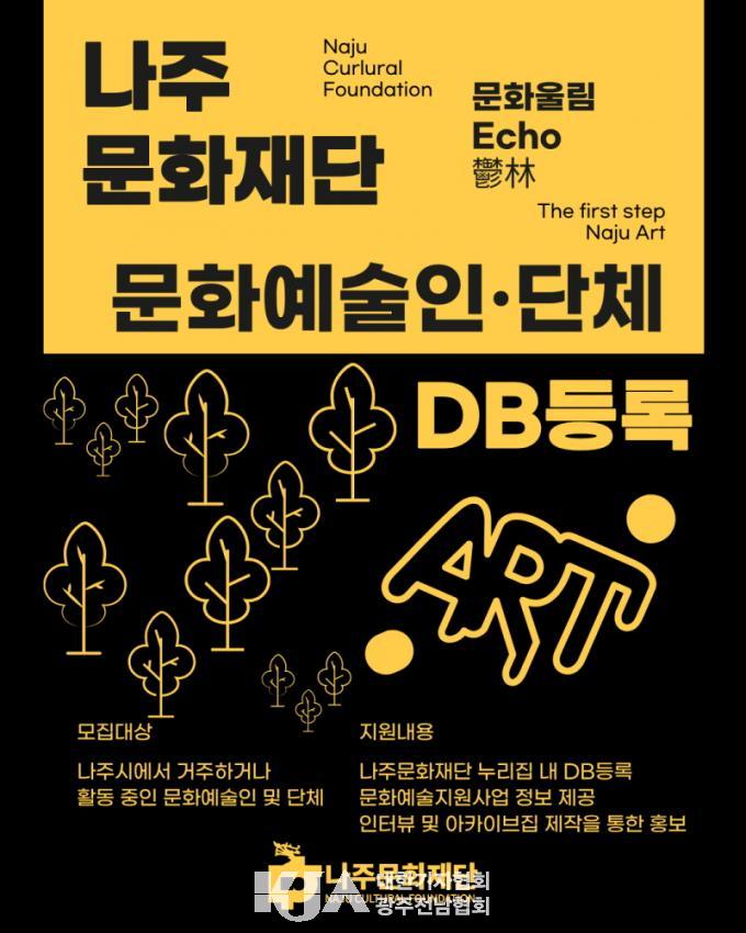 [´ëÇѱâÀÚÇùȸ ³ªÁÖ½ÃÁöȸ ±èÁ¾±Ù ±âÀÚ] ³ªÁÖ¹®ÈÀç´Ü(´ëÇ¥ÀÌ»ç ±èÂùµ¿, ÀÌÇÏ Àç´Ü)ÀÌ Áö¿ª ¿¹¼úÀΰú ¿¹¼ú´ÜüÀÇ È°µ¿ Á¤º¸¸¦ ü°èÀûÀ¸·Î °ü¸®ÇÏ°í ¹®È¿¹¼ú Áö¿ø ±â¹ÝÀ» °ÈÇϱâ À§ÇØ ÅëÇÕ µ¥ÀÌÅͺ£À̽º ±¸Ãà¿¡ ³ª¼¹´Ù.