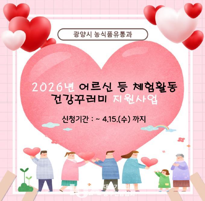 | | ±¤¾ç½Ã, ¡®¾î¸£½Å µî üÇèȰµ¿ °Ç°²Ù·¯¹Ì¡¯ Áö¿ø»ç¾÷ ÃßÁø¡¦ 4¿ù 15ÀϱîÁö Á¢¼ö |