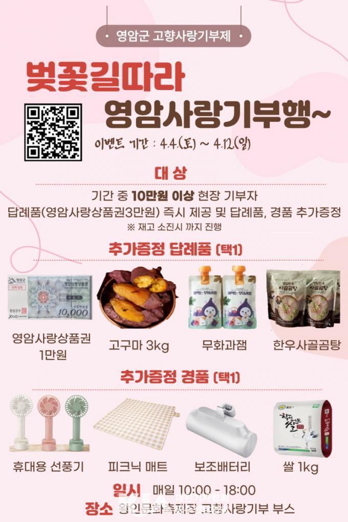ÀÌ¿Í ÇÔ²² ÃàÁ¦ ±â°£ÀÎ 4¿ù 4ÀϺÎÅÍ 12ÀϱîÁö ÃàÁ¦Àå ³» °íÇâ»ç¶û±âºÎ ºÎ½º¿¡¼­´Â ÇöÀå ±âºÎ À̺¥Æ®µµ ¿î¿µµÈ´Ù. ÇöÀå¿¡¼­ ±âºÎ¿¡ Âü¿©ÇÒ °æ¿ì ±âÁ¸ ´ä·Êǰ¿¡ ´õÇØ Ãß°¡ ÁõÁ¤Ç°À» ¹ÞÀ» ¼ö ÀÖ´Ù.