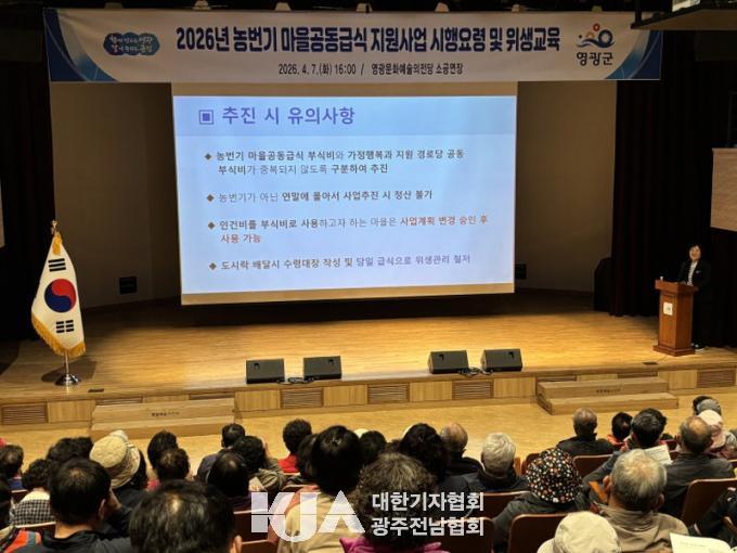[´ëÇѱâÀÚÇùȸ ¿µ±¤±ºÁöȸ] ¿µ±¤±º(¿µ±¤±º¼ö ±ÇÇÑ´ëÇà ¼Û±¤¹Î)Àº Áö³­ 7ÀÏ 2026³â ³ó¹ø±â ¸¶À»°øµ¿±Þ½Ä Áö¿ø»ç¾÷ ÃßÁø¿¡ ¾Õ¼­ ¿µ±¤¹®È­¿¹¼úÀÇÀü´ç ¼Ò°ø¿¬Àå¿¡¼­ ´ë»ó¸¶À» 114°³¼ÒÀÇ ¸¶À»´ëÇ¥¿Í Á¶¸®¿ø 230¿©¸íÀ» ´ë»óÀ¸·Î »ç¾÷¼³¸íȸ ¹× À§»ý±³À°À» ½Ç½ÃÇÏ¿´´Ù.