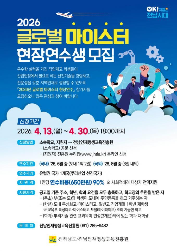 | Àü¶ó³²µµ, 2026³â ±Û·Î¹ú ¸¶À̽ºÅÍ ÇöÀå ¿¬¼ö ÁøÇà ¡®±Û·Î¹ú ¸¶À̽ºÅÍ ÇöÀ忬¼ö¡¯ µµÀüÇϼ¼¿ä! 13ÀϺÎÅÍ Á÷¾÷°è°í »Ñ¸®±â¼ú Çаú 1Çгâ Á¢¼ö |