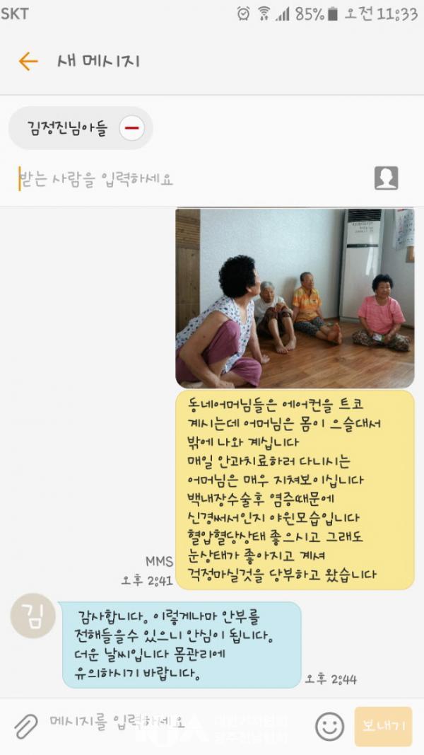 ÇÑÆí, ¹®ÀÚ¸¦ ÅëÇØ ¸Å´Þ ºÎ¸ð´ÔÀÇ ¼Ò½ÄÀ» ÀüÇØ ¹Þ°í ÀÖ´Â ¿Áõ¸é ¾ç¸ð¾¾´Â ¡°ÀÚÁÖ Ã£¾ÆºËÁö ¸øÇØ ´Ã ¸¶À½¿¡ °É·ÁÀÖ´Â ºÎ¸ð´Ô ¼Ò½ÄÀ» ¹Þ¾Æº¼¶§¸¶´Ù ¾È½ÉÀÌ µÈ´Ù¡±¸ç ¡°¸Ö¸®ÀÖ´Â Àڽĺ¸´Ù Àß Ã¬°ÜÁÖ¾î Áø½ÉÀ¸·Î °í¸¿´Ù¡±°í ÀüÇß´Ù.