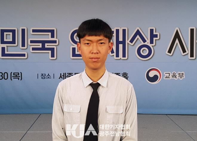 11¿ù 30ÀÏ ¼¼Á¾¹®Èȸ°ü¿¡¼ ¿¸° ½Ã»ó½Ä¿¡¼ Àü±¹¿¡¼ ¼±¹ßµÈ °íµîÇлý 50¸í Áß 1ÀÎÀ¸·Î ¼±Á¤µÇ¾î, ºÎÃѸ® °â ±³À°ºÎÀå°ü »óÀå°ú »ó±ÝÀ» ¹Þ¾Ò´Ù.