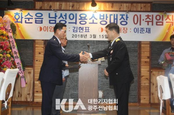 À̳¯ Çà»ç´Â ÀüÀÓ ´ëÀåÀÇ ³ë°í¸¦ Ä¡ÇÏÇÏ°í »õ·Ó°Ô ÃëÀÓÇÑ ÀÌÁØÀç ½ÅÀÓ´ëÀåÀ» ÃàÇÏÇϱâ À§ÇØ ¼Ò¹æ°ø¹«¿ø, ÀÇ¿ë¼Ò¹æ´ë¿ø, À¯°ü±â°ü °ü°èÀÚ µî 80¿©¸íÀÌ Âü¼®ÇÑ °¡¿îµ¥ ÀÌÃëÀÓ½ÄÀ» °¡Á³´Ù.