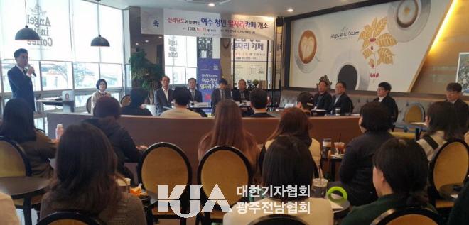 20ÀÏ ¿©¼ö½Ã¿¡ µû¸£¸é 19ÀÏ ¿£Á¦¸®³Ê½º ½ÖºÀÁ¡¿¡¼ ¿©¼ö½Ã û³â ÀÏÀÚ¸®Ä«Æä °³¼Ò½ÄÀÌ ¿·È´Ù. À̳¯ °³¼Ò½Ä¿¡´Â ÃÖÁ¾¼± ¿©¼ö½Ã ºÎ½ÃÀå, Á¤¿µÁØ Àü³²Ã¢Á¶°æÁ¦Çõ½Å¼¾ÅÍÀå, Áö¿ª ´ëÇÐ °ü°èÀÚ µîÀÌ Âü¼®Çß´Ù.