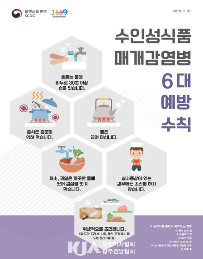 ¼öÀμº?½Äǰ¸Å°³ °¨¿°º´À» ¿¹¹æÇϱâ À§Çؼ´Â ¡ãÈ帣´Â ¹°¿¡ 30ÃÊ ÀÌ»ó ºñ´©·Î ¼Õ¾Ä±â ¡ãÀ½½ÄÀº ÃæºÐÈ÷ ÀÍÇô ¸Ô±â ¡ã¹°Àº ²ú¿©¸¶½Ã±â ¡ãä¼Ò?°úÀÏÀº ±ú²ýÇÑ ¹°¿¡ ¾Ä¾î ²®ÁúÀ» ¹þ°Ü¸Ô±â ¡ã¼³»çÁõ»óÀÌ ÀÖÀ» °æ¿ì³ª »óó³ ¼ÕÀ¸·Î À½½ÄÁ¶¸®ÇÏÁö ¾Ê±â ¡ãÄ®?µµ¸¶ µîÀº ºÐ¸®ÇØ »ç¿ëÇÏ°í »ç¿ë ÈÄ ¼Òµ¶Çϱ⠵î û°áÇÑ È¯°æ°ü¸®¿Í °³ÀÎÀ§»ý ¼öÄ¢ Áؼö°¡ Áß¿äÇÏ´Ù.