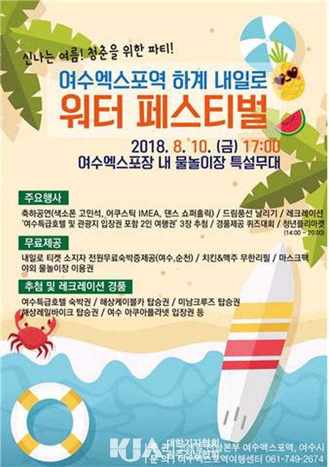 | ¿©¼ö½Ã, ÄÚ·¹ÀÏ Àü³²º»ºÎ¿Í ÇÔ²² ¡®³»ÀÏ·¯ ¿öÅÍÆä½ºÆ¼¹ú¡¯°³ÃÖ 10ÀÏ 17½ÃºÎÅÍ ¹Ú¶÷ȸÀå¼ ¹°³îÀÌ.Ä¡¸ÆÆÄƼ.Ưº°°ø¿¬ µî |