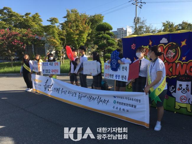 °î¼º±º º¸°ÇÀÇ·á¿ø, °î¼º±³À°Áö¿øÃ» °ü°èÀÚ, ±³Á÷¿ø, Çлýȸ ÀÓ¿øµé°ú ÇÔ²² ¡°Èí¿¬, ½º½º·Î¸¦ Á×À̰í ŸÀεµ Á×À½¿¡ À̸£°Ô ÇÕ´Ï´Ù.¡±, ¡° ¼úÀº ¿ì¸® ¸öÀ» ¾ÆÇÁ°Ô ÇØ¿ä¡±¶ó´Â ½½·Î°ÇÀ¸·Î Çлýµé¿¡°Ô ±Ý¿¬°ú ÀýÁÖÀÇ Çʿ伺À» °Á¶ÇßÀ¸¸ç, ÇлýµéÀÇ ÀýÁÖ, ±Ý¿¬ ½ÇõÀ» À§ÇÑ È«º¸¹°µµ ¹èºÎÇß´Ù. À̹ø Ä·ÆäÀο¡ Âü¿©ÇÑ ÇлýºÎ ±³»ç´Â ¡°³Ê¸¦ À§ÇØ ÁغñÇß¾î. ±Ý¿¬ÇÏÀÚ. ÀýÁÖÇÏÀÚ.¡±¶ó°í ¸»Çϸç ÇлýµéÀ» ¿Ã¹Ù¸¥ ±æ·Î À̲ø¾ú´Ù.