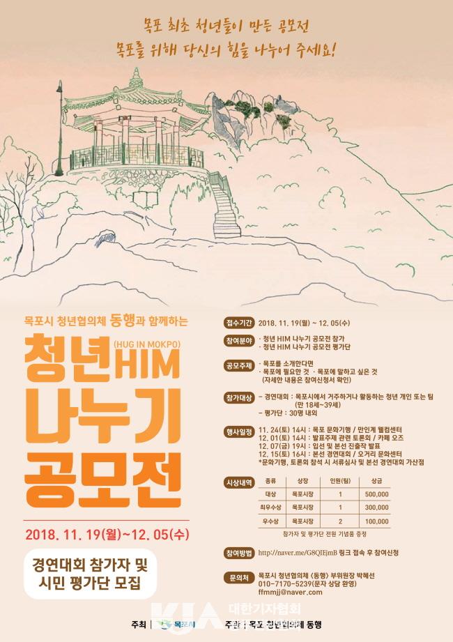 ¸ñÆ÷½Ã°¡ ÁÖÃÖÇÏ°í ¸ñÆ÷½Ã û³âÇùÀÇüÀÎ ¡®Ã»³â µ¿Çà(ÔÒú¼?ÔÒú¹)¡¯ÀÌ ÁÖ°üÇÏ´Â ¡®Ã»³âÀÇ Èû(HIM : Hug In Mokpo) ³ª´©±â °æ¿¬´ëȸ¡¯°¡ ¡®Ã»³â, ¸ñÆ÷¸¦ ǰ¿¡ ¾È´Ù¡¯¸¦ ½½·Î°ÇÀ¸·Î °³ÃֵȴÙ.