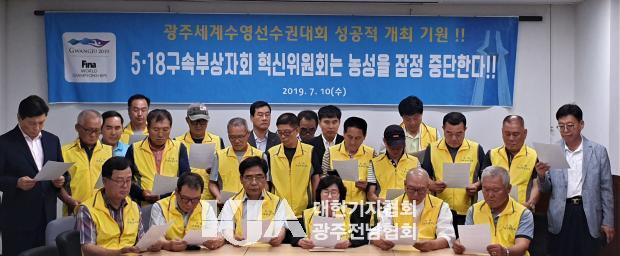 »ç´Ü¹ýÀÎ 5¡¤18 ±¸¼ÓºÎ»óÀÚȸ Çõ½ÅÀ§¿øÈ¸´Â 5¡¤18 ±³À°°ü Á¤»óÈ Ã˱¸ ³ó¼ºÀ» ÀáÁ¤ Áß´ÜÇß´Ù. Çõ½ÅÀ§¿øÈ¸´Â 10ÀÏ ¿ÀÈÄ ±¤ÁÖ±¤¿ª½Ã ½ÃÀÇȸ ºê¸®Çη뿡¼ ±âÀÚȸ°ßÀ» ÇÏ°í ¼¼°è¼ö¿µ¼±¼ö±Ç´ëȸ µ¿¾È ³ó¼ºÀ» ÀáÁ¤ ¿¬±âÇÑ´Ù°í ¹àÇû´Ù.