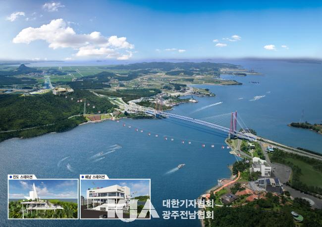 ÄÉÀ̺íÄ« ³ë¼±Àº Áøµµ±º ±º³»¸é ÁøµµÅ¸¿ö¿Í ÇØ³²±º ¿ì¼ö¿µ °ü±¤ÁöÀÌ´Ù. ÁøµµÅ¸¿ö´Â ¿ïµ¹¸ñ°ú ¾Æ¸§´Ù¿î ¾ß°æÀ» ÀÚ¶ûÇÏ´Â Áøµµ´ë±³¸¦ ÇÑ´«¿¡ º¼ ¼ö ÀÖ´Â Áøµµ±ºÀÇ ´ëÇ¥ °ü±¤Áö·Î 115m ³ôÀÌ ¸Á±Ý»ê ²À´ë±â¿¡ À§Ä¡Çϰí ÀÖ´Ù. À̰÷¿¡¼ 10Àν °ïµ¹¶ó ÄÉÀ̺íÄ« 26´ë°¡ ÇØ³²±º ¿ì¼ö¿µ °ü±¤Áö±îÁö À̾îÁö¸ç, ³ë¼±±æÀÌ´Â 920mÀÌ´Ù.