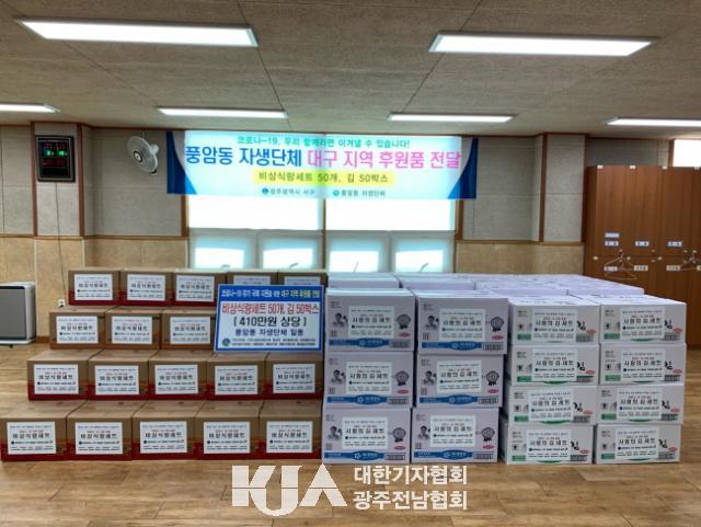 | ±¤Áֽà ¼±¸ dz¾Ïµ¿, Äڷγª-19 ±Øº¹ À§ÇÑ µû¶æÇÑ ÈÄ¿ø ÀÕµû¶ó dz¾Ïµ¿ ÀÚ»ý´Üü Àϵ¿, ´ë±¸ ¼±¸¿¡ ºñ»ó½Ä·®¼¼Æ® 50°³ ¹× ±è 50¹Ú½º ÈÄ¿ø