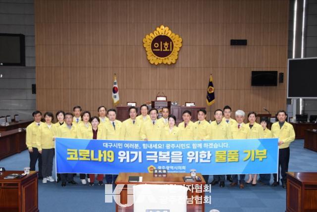 [´ëÇѱâÀÚÇùȸ ±¤ÁÖÀü³²Çùȸ Á¤½ÂÇö ±âÀÚ] ±¤ÁÖ±¤¿ª½ÃÀÇȸ(ÀÇÀå ±èµ¿Âù) ÀÇ¿ø Àϵ¿ÀÌ Äڷγª19·Î ¾î·Á¿òÀ» °Þ°í ÀÖ´Â ´ë±¸½Ã¹ÎÀ» ÀÀ¿øÇϱâ À§ÇØ ´ë±¸±¤¿ª½ÃÀÇȸ(ÀÇÀå ¹èÁö¼÷)¿¡ ±âºÎ¹°Ç°À» Àü´ÞÇß´Ù.