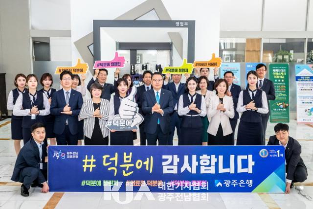 ¼ÛÁ¾¿í ±¤ÁÖÀºÇàÀå°ú ÀÓÁ÷¿øµéÀº 7ÀÏ, º»Á¡¿¡¼ ¼ö¾î µ¿ÀÛÀ» ÃëÇÏ°í ¡°¡®Äڷγª19¡¯ ÀÇ·áÁø ¿©·¯ºÐ, °¨»çÇÕ´Ï´Ù. Á¸°æÇÕ´Ï´Ù¡±¶ó°í ¸Þ½ÃÁö¸¦ ÀüÇÏ¸ç ´ëÇѹα¹ ÀÇ·áÁøµé¿¡ ´ëÇÑ ÀÓÁ÷¿øµéÀÇ °¨»çÇÔÀ» Ç¥ÇöÇß´Ù.