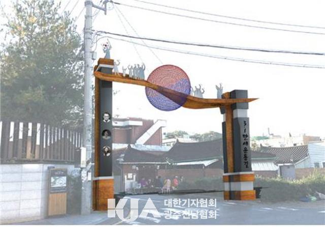 ÀÌ¿¡ µû¶ó ³²±¸´Â ÀÌ´ÞºÎÅÍ °ø»ç¿¡ µé¾î°¡ ¿À´Â 8¿ù Á¤µµ¿¡ 3‧1¸¸¼¼¿îµ¿±æ »ó¡ °ÔÀÌÆ® ¼³Ä¡ °ø»ç¸¦ ¿Ï·áÇÒ °èȹÀÌ´Ù. »ó¡ °ÔÀÌÆ® Á¶Çü¹° »ó´Ü¿¡´Â 3‧1¸¸¼¼¿îµ¿ÀÇ ¼ýÀÚ 3À» »ó¡ÇÏ´Â ¹°°á ¸ð¾çÀÇ °¡·Î ¹Ù¿Í ¼ýÀÚ 1À» ³ªÅ¸³»´Â ±âµÕÀ» ¼³Ä¡ÇÏ´Â ÇüÅ·ΠÁ¦À۵ȴÙ.