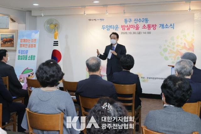 [´ëÇѱâÀÚÇùȸ ±¤ÁÖÀü³²Çùȸ Á¤½ÂÇö ±âÀÚ] ±¤Áֽà µ¿±¸(ûÀå ÀÓÅÃ) »ê¼ö2µ¿ ¡®µÎ¾ÏŸ¿îÀÔÁÖÀÚ´ëǥȸ¡¯´Â 30ÀÏ µÎ¾ÏŸ¿î¾ÆÆÄÆ®¿¡¼ ¼ÒÅë¹æ ȸ¿ø, ÀÔÁֹΠµî 50¿© ¸íÀÌ Âü¼®ÇÑ °¡¿îµ¥¡®¹ã½Ç¸¶À» ¼ÒÅë¹æ¡¯ °³¼Ò½ÄÀ» °³ÃÖÇß´Ù°í ¹àÇû´Ù.
