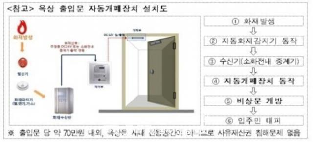 ÀÚµ¿°³ÆóÀåÄ¡¶õ Æò»ó½Ã¿¡´Â Àá°ÜÀÖ´Â ¿Á»ó ÃâÀÔ¹®ÀÌ ÈÀç°¡ ¹ß»ýÇÒ ¶§, °¨Áö±â¿Í ¿¬µ¿µÇ¾î ¿Á»ó ÃâÀÔ¹®À» °³¹æÇØÁØ´Ù. ¿Á»óÀº ÈÀç ¹ß»ý ½Ã¿¡ ÀÔÁÖ¹ÎÀÌ ´ëÇǰø°£À¸·Î Ȱ¿ëÇÒ ¼ö ÀÖ´Â ¾ÆÁÖ Áß¿äÇÑ °ø°£ÀÌ´Ù.