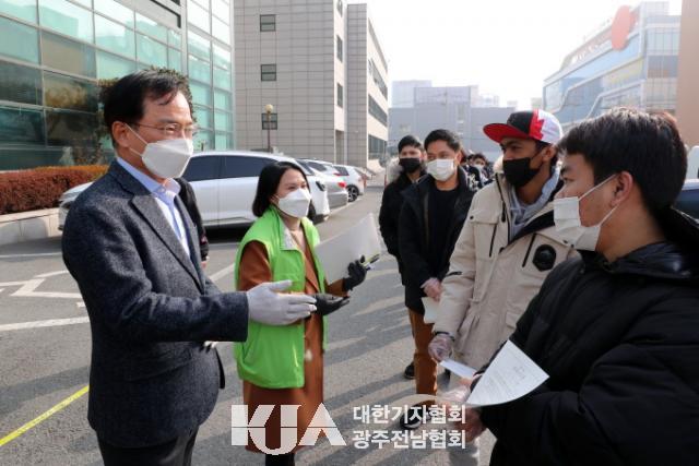 [´ëÇѱâÀÚÇùȸ ±¤ÁÖÀü³²Çùȸ Á¤½ÂÇö ±âÀÚ] ±è»ïÈ£ ±¤»ê±¸Ã»ÀåÀÌ 7ÀÏ ¿Ü±¹ÀÎÁֹΠÄڷγª19 °ËÁø °Ë»ç¸¦ À§ÇØ Àӽü±º°Áø·á¼Ò°¡ ¼³Ä¡µÈ ÇϳªÀºÇà ±¤»êÁöÁ¡À» ¹æ¹®ÇØ ¹æ¿ª¿¡ ÇùÁ¶ÇØÁØ ÀºÇà °ü°èÀڵ鿡°Ô °¨»çÀλ縦 ÀüÇϰí, ¿Ü±¹ÀÎÁֹΰú ¼³ Àλ縦 ³ª´³´Ù.