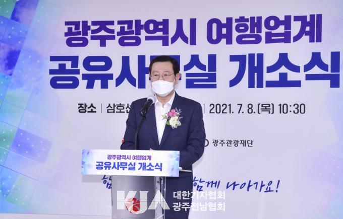 ÇÑÆí, À̿뼷 ±¤ÁÖ±¤¿ª½ÃÀåÀº ¡°°øÀ¯»ç¹«½Ç Áö¿øÀº ±¤ÁÖ °ü±¤»ê¾÷ÀÇ Å« ÃàÀÎ ¿©Çà¾÷°èÀÇ ¾î·Á¿òÀ» ÇÔ²² ±Øº¹Çϱâ À§ÇØ ¿ì¸® ½Ã¿¡¼ ¼±Á¦ÀûÀ¸·Î ÀÚü ¿¹»êÀ» Æí¼ºÇÏ¿© ÃßÁøÇÑ »ç¾÷ÀÌ´Ù¡±¸ç ¡°¾ÕÀ¸·Î ±¤ÁÖ°¡ °ü±¤µµ½Ã·Î ¹ßµ¸¿òÇÒ ¼ö ÀÖµµ·Ï, ¿©Çà¾÷°è°¡ ±¤ÁÖ °ü±¤ ¼ºÀå°ú º¯ÈÀÇ ÁÖ¿ªÀÌ µÇ¾îÁÖ±æ ¹Ù¶õ´Ù¡±°í ¸»Çß´Ù.